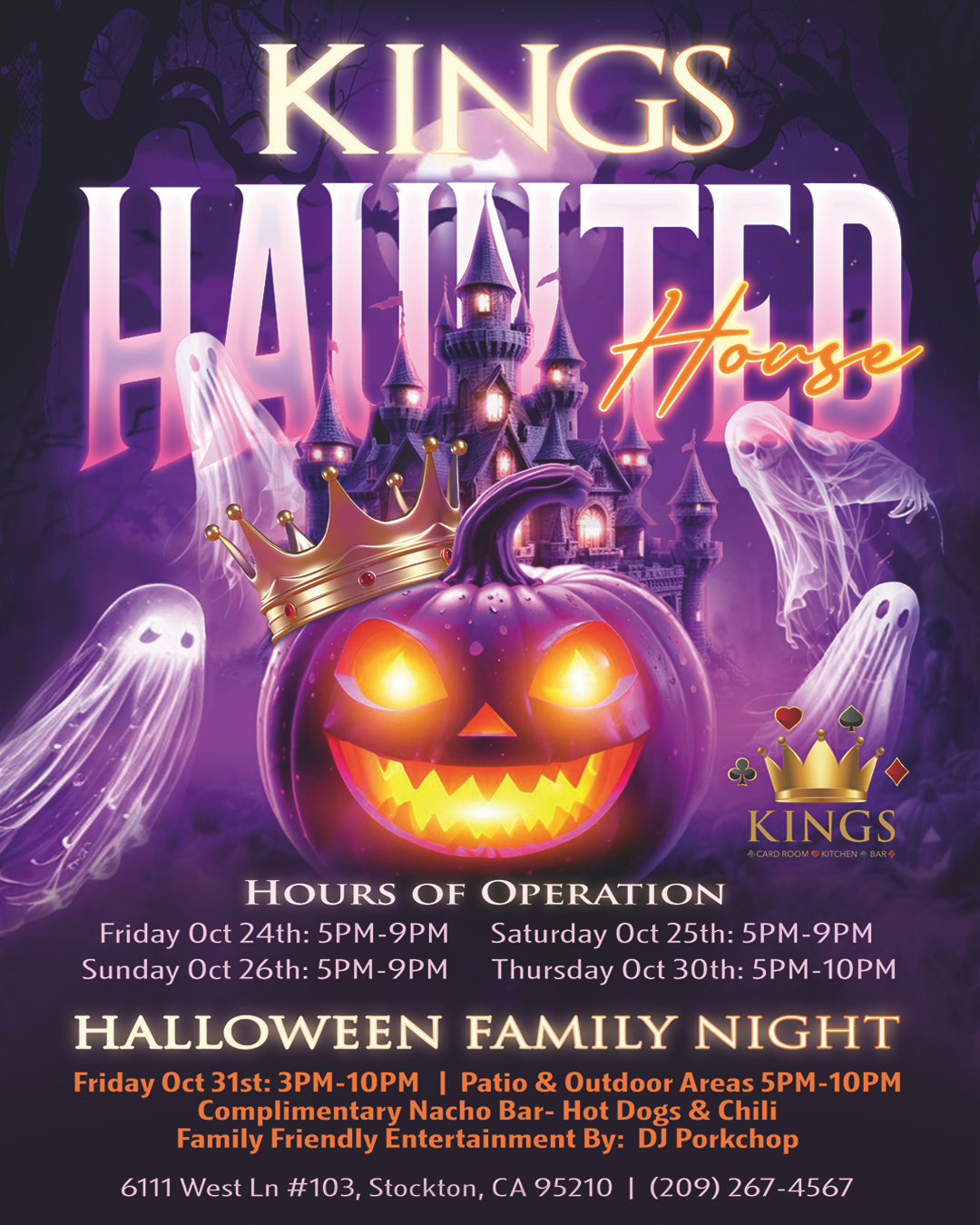 As Halloween approaches, Kings Card Club is providing the community with a safe and welcoming space to celebrate. With free entry, candy, food, and family activities, the event underscores Kings’ ongoing commitment to giving back to the Stockton community. Kings Card Club is focused on providing a family-friendly environment for everyone, consistently hosting live music and fun events where the entire city can come together to enjoy the space. Reporters are invited to capture the spirit of families celebrating the holiday together and see first-hand cardroom’s commitment to a better California.