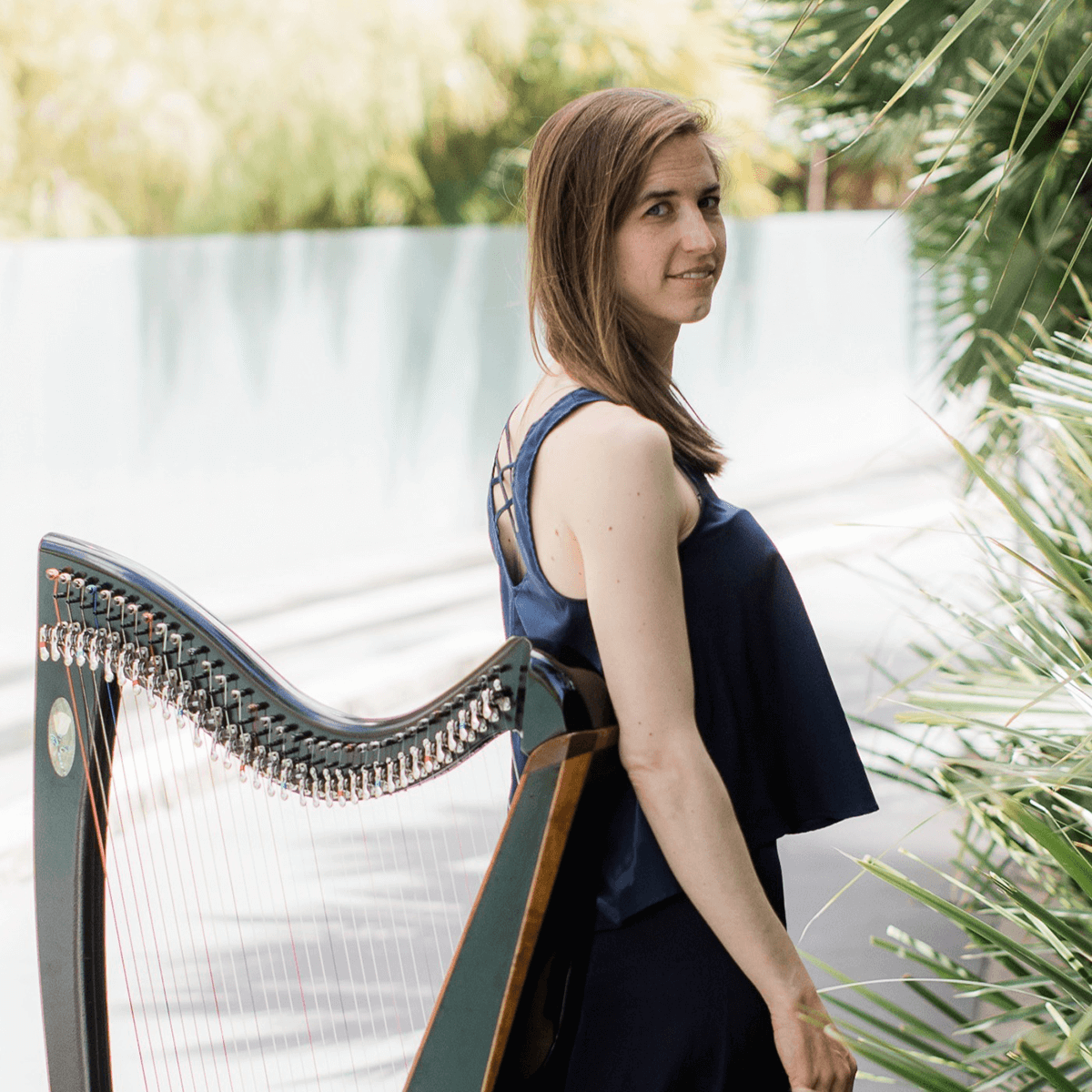 Traditionally associated with folk music, the lever harp rarely appears in highly chromatic repertoire. Romano bridges these worlds by performing complex classical works on the lever harp, skillfully shifting levers mid-piece to achieve a full range of color and expression. She holds a Master’s degree in Classical Lever Harp Performance from San Francisco State University and is an active performer, arranger, and educator.